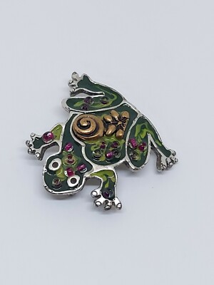 Chico S Abstract Green Frog Silver Tone Brooch Pin Ebay